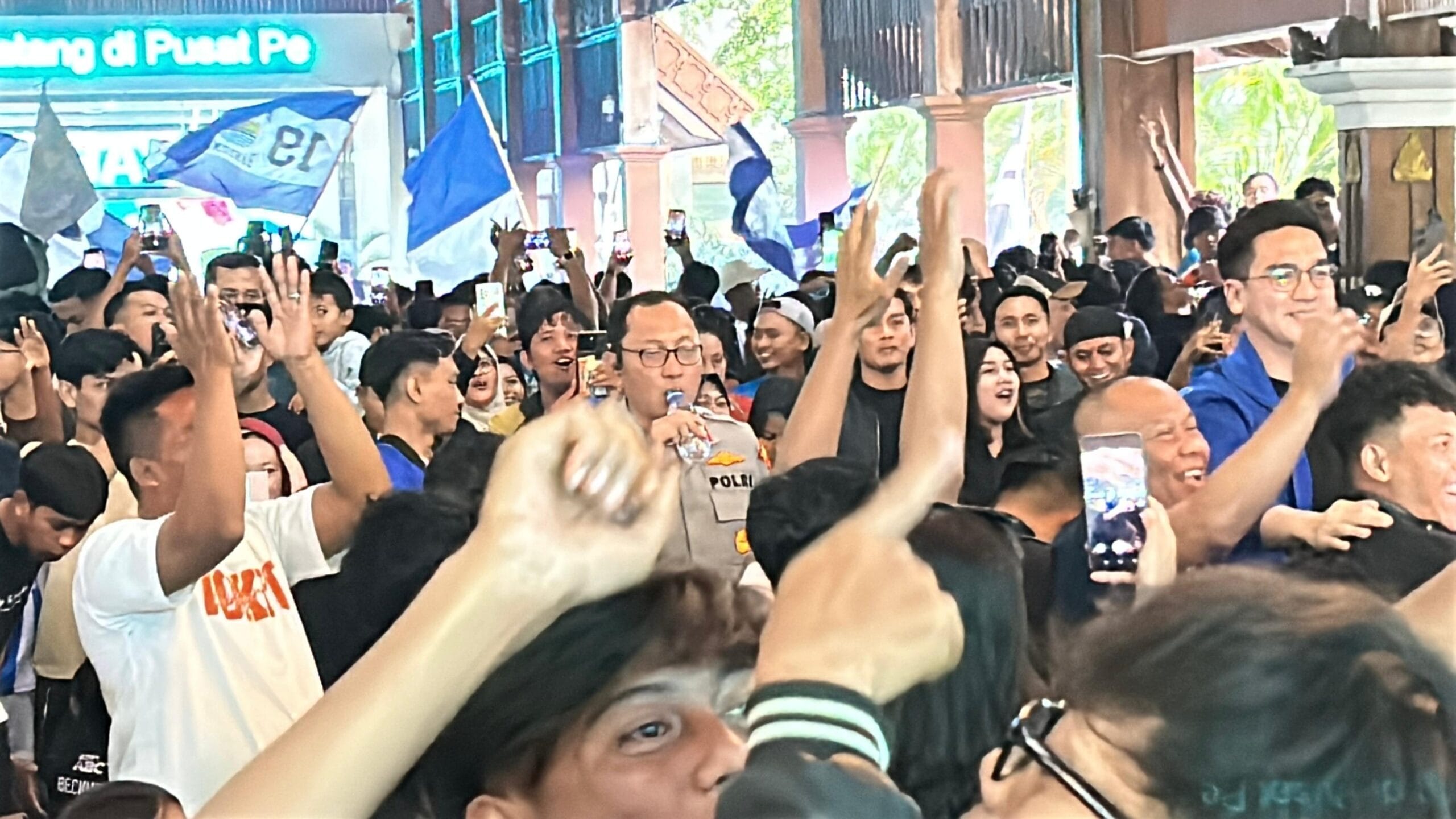 hallosumedang – Kegiatan nonton bareng (nobar) pertandingan BRI Super League 2025/2026 antara Persib Bandung melawan Persija Jakarta yang digelar serentak di berbagai titik wilayah Kabupaten Sumedang, Minggu (11/1/2026), berlangsung aman, tertib, dan kondusif.